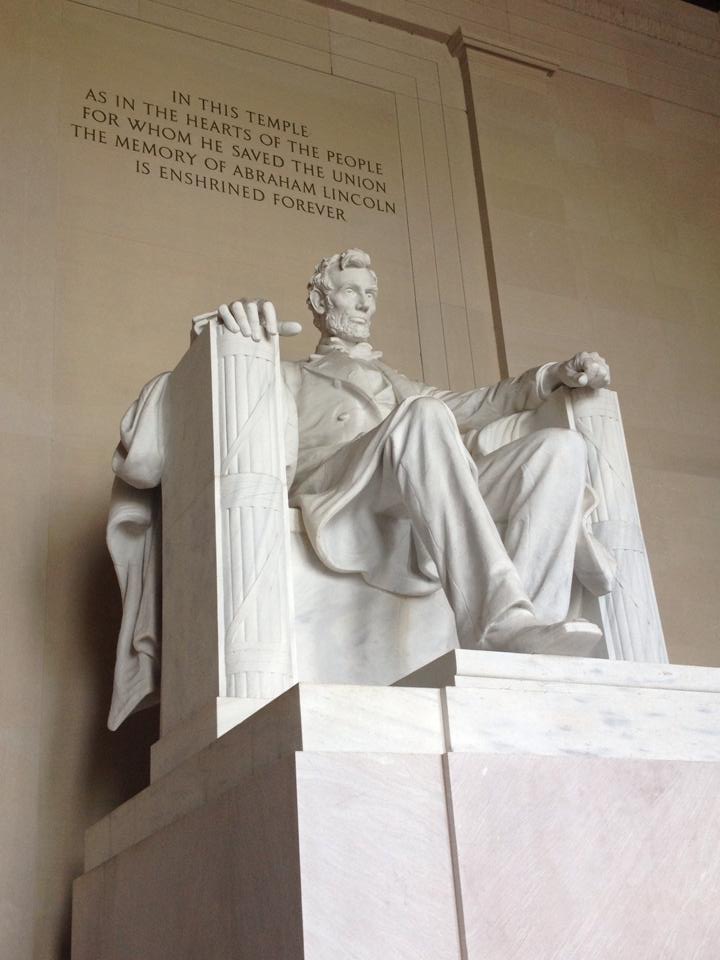 We took a stroll along the length of the mall, really hoping to walk along the middle of it to get the full effect, but with a spattering of rain the previous night and a gravel path, it was not condusive to wheelchair travel! The sidewalks were very accessible though and we still got to see the magnificence of this huge green space. Walking past the Washington Monument and through the recently built and spectacular fountains of the World War 2 memorial we followed the edges of the reflecting pool to the Lincoln Memorial. An elevator at the side of the main building afforded me easy access and I will admit to shedding a tear or two as I walked into the main hall to see the huge marble statue that is so iconic. The stairs at the front of the memorial are split halfway down by a small mezzanine from where Martin Luther King delivered his “I have a dream” speech. Lack of a ramp and a broken leg were not going to stop me, so supported by a Mieke on one side and Kerry on the other (and with a stranger kindly offering to keep an eye on my wheelchair while we went down) I walked down 18 steps to stand on the spot. It really was worth it. We were all speechless.