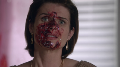 The masks and costumes were truly disturbing and the music, directing choices, VFX, make up and lighting all contributed to some good old-fashioned scares. Of course, nothing beat the moment the super creepy, blood spattered, knife-wielding clown stepped into the elevator with Sam. Jared Padalecki conveyed the younger Winchester’s well known phobia with palpable panic and I cheered when Sam was able to overpower his biggest fear and save the innocent man inside the scary suit.